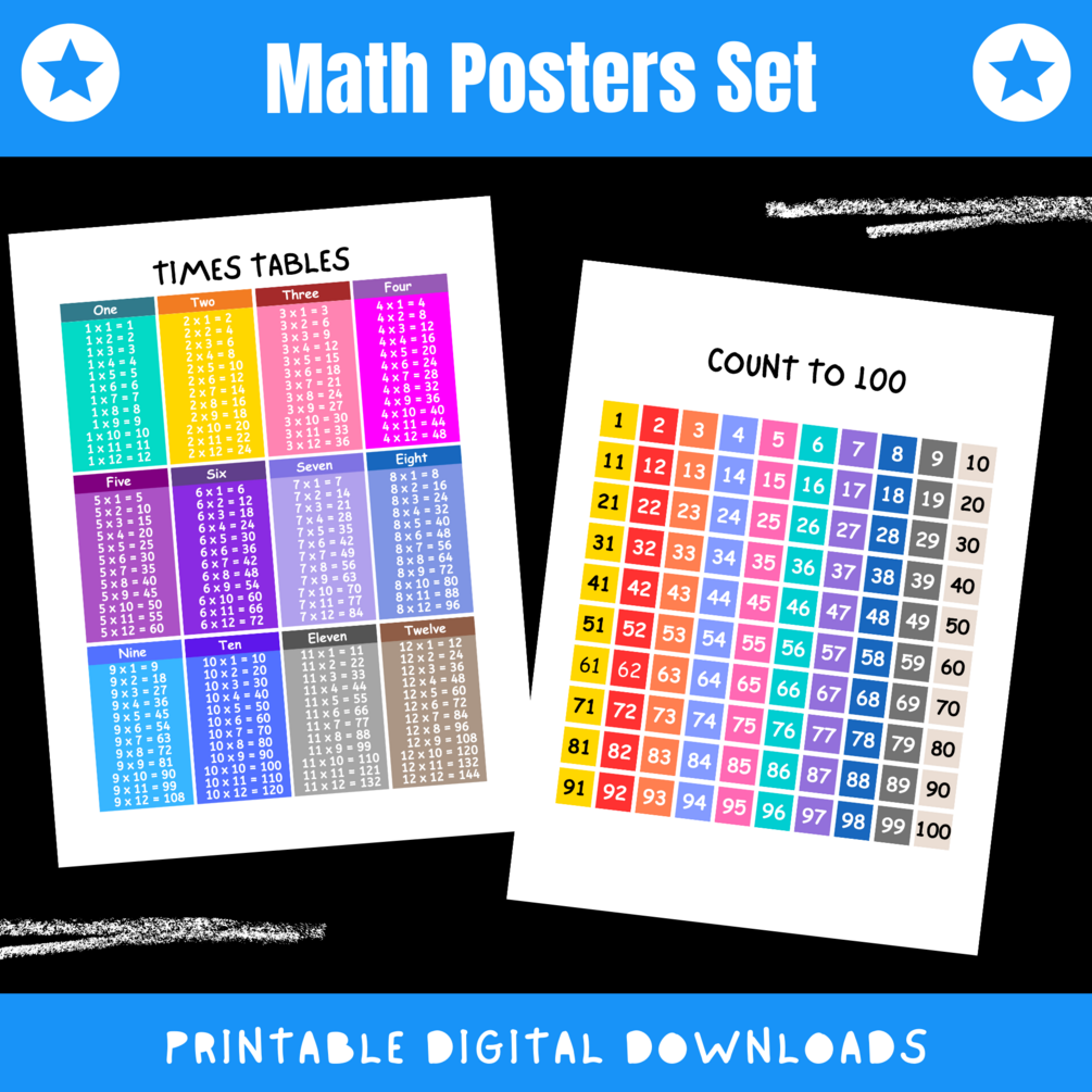 Make learning fun and accessible with our 'Counting to 100' and 'Multiplication Chart' wall posters. Empower young minds to explore and excel in math!